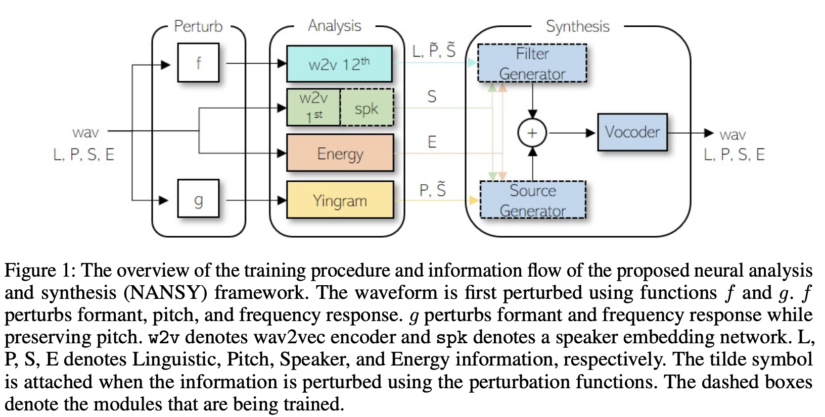 입력 음성 신호의 정보 일부를 의도적으로 교란하여 각 분석 기능이 특정 속성만을 추출하도록 훈련한다.